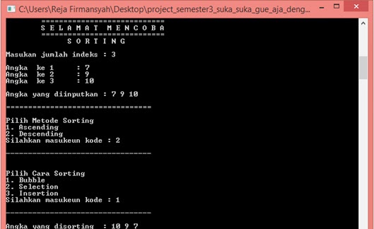 ke-tiga metode sorting dalam satu program tersebut dapat dilakukan dengan